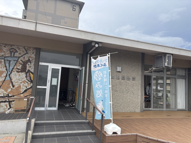 クールシェアふくおか事業では、宝台団地集会所に来られた方に熱中症予防の啓発活動、